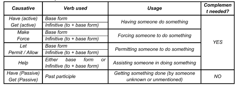 NOTE: Have, Make, Let do not require an infinitive (to + base form) — they take the bare base verb instead.